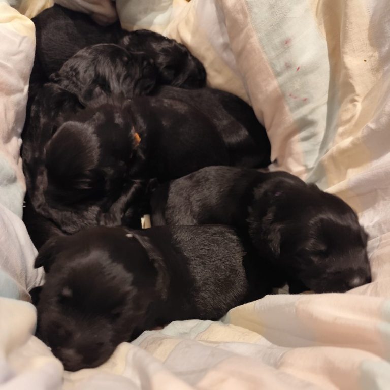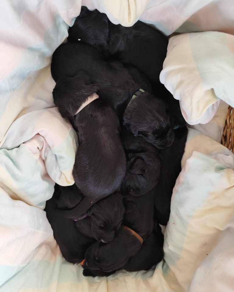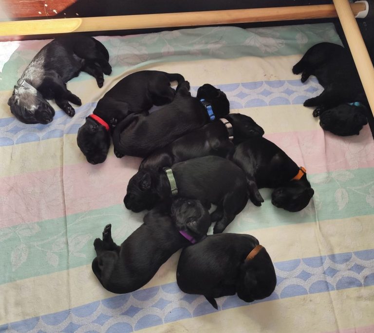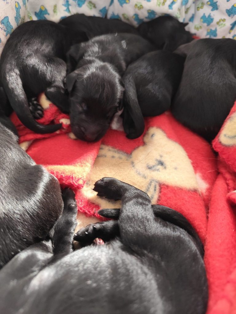 Unser L-Wurf hat im Laufe der Nacht, dass Licht der Welt erblickt. Unsere Shoshoni hat neun munteren Zwergen das Leben geschenkt. 6 Hündinnen und 3 Rüden belagern nun die nächsten Wochen unser Haus und Garten ;-) Mutter und Kinder sind wohl auf und wir freuen uns riesig.
